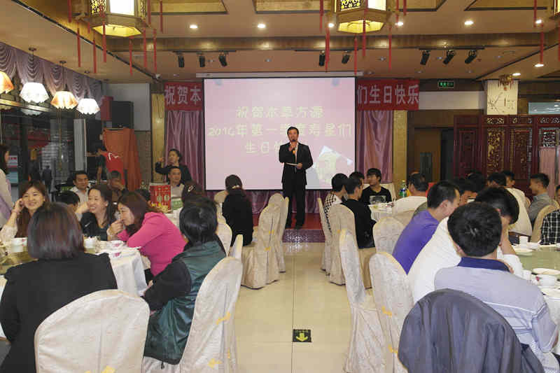 为了加强企业文化建设,增进员工之间的感情和友谊,共同打造一个和谐友爱、团结奋进的工作氛围。我公司于2014年4月25日,在渔洋楼酒店举办我公司2014年第一季度员工生日晚会。参加此次生日晚会的员工有1月份至3月份生日的员工。公司每个季度为员工举行生日晚会已经成为公司的一个传统。