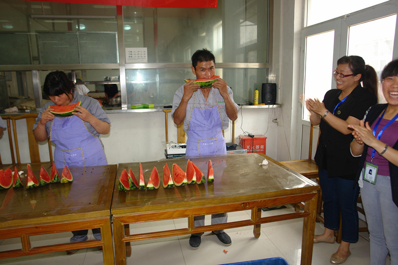 炎炎夏日,为丰富我公司员工的业余生活,提高公司员工的生活质量,我公司予2013年6月22日在员工餐厅举办2013年第一届吃西瓜比赛。全体员工都参加了此次活动,参与热情高涨,纷纷报名参加本届的吃西瓜比赛。比赛分为三个环节,分别为吃的多、吃的快和最默契组合。通过此次活动充分体现了公司关爱员工生活,构建和谐企业。