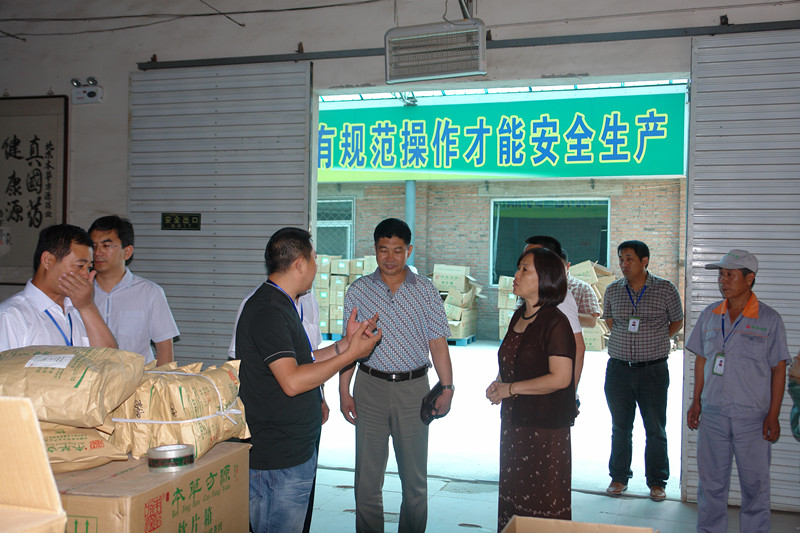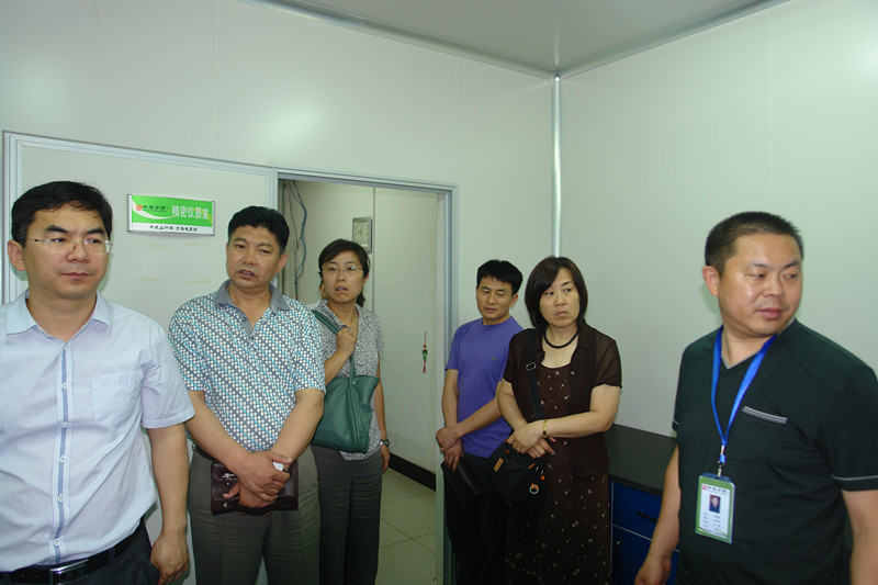 6月12日,北京某医药公司领导来我公司视察。在我公司总裁周景春、副总经理白东初、厂长师道远、生产厂长杨书山等陪同下,医药公司领导视察了我公司的成品库、生产车间、精选包装车间、原料库、精密仪器实验室等。在视察后给予了高度的评价。