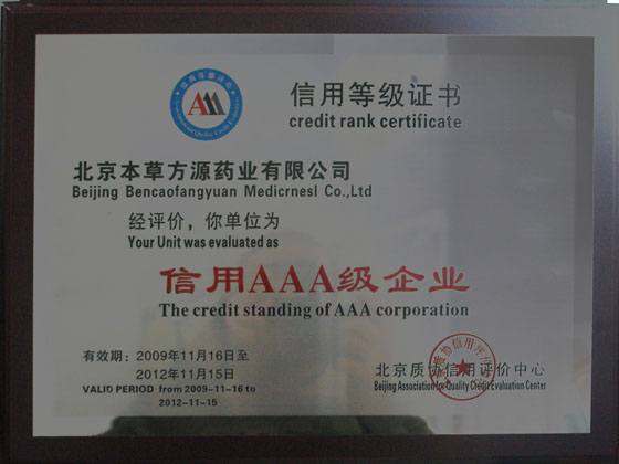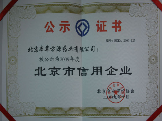 近期我公司又被国务院发展研究中心入选为载入史册的'建国60周年中国医药卫生最具影响力企业和杰出贡献人物的<光辉的历程_新中国成立60周年成就特辑.2009年10月我公司被北京市企业评价协会公示为北京市信用企业,11月我公司被北京质协评价中心评为信用3A级企业.